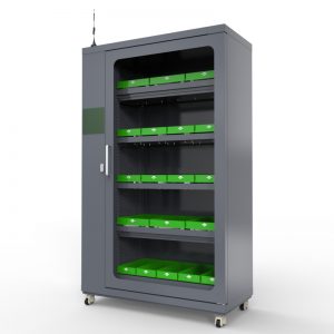 - 每个工具/模具嵌入耐高温抗金属RFID标签(如UHF RFID),柜内集成多天线阵列,实现秒级批量盘点(无需逐个扫描)。